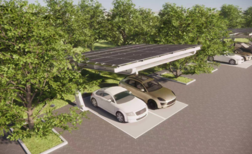 光伏发电 + 储能电池 + 充电桩 + 车棚防护,四合一设计,满足用电、充电、遮阳、遮雨、防护等全场景功能需求,光储充智能联动,高效提升绿电利用率