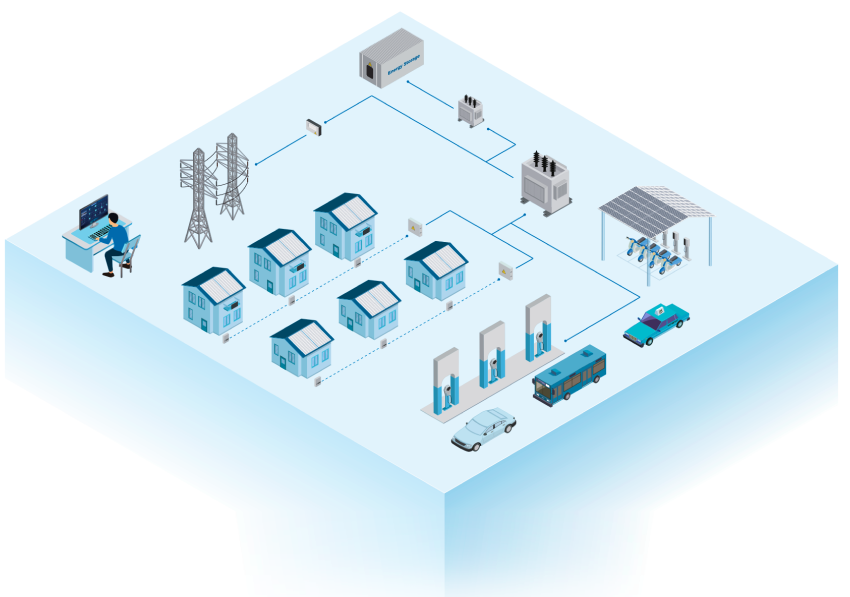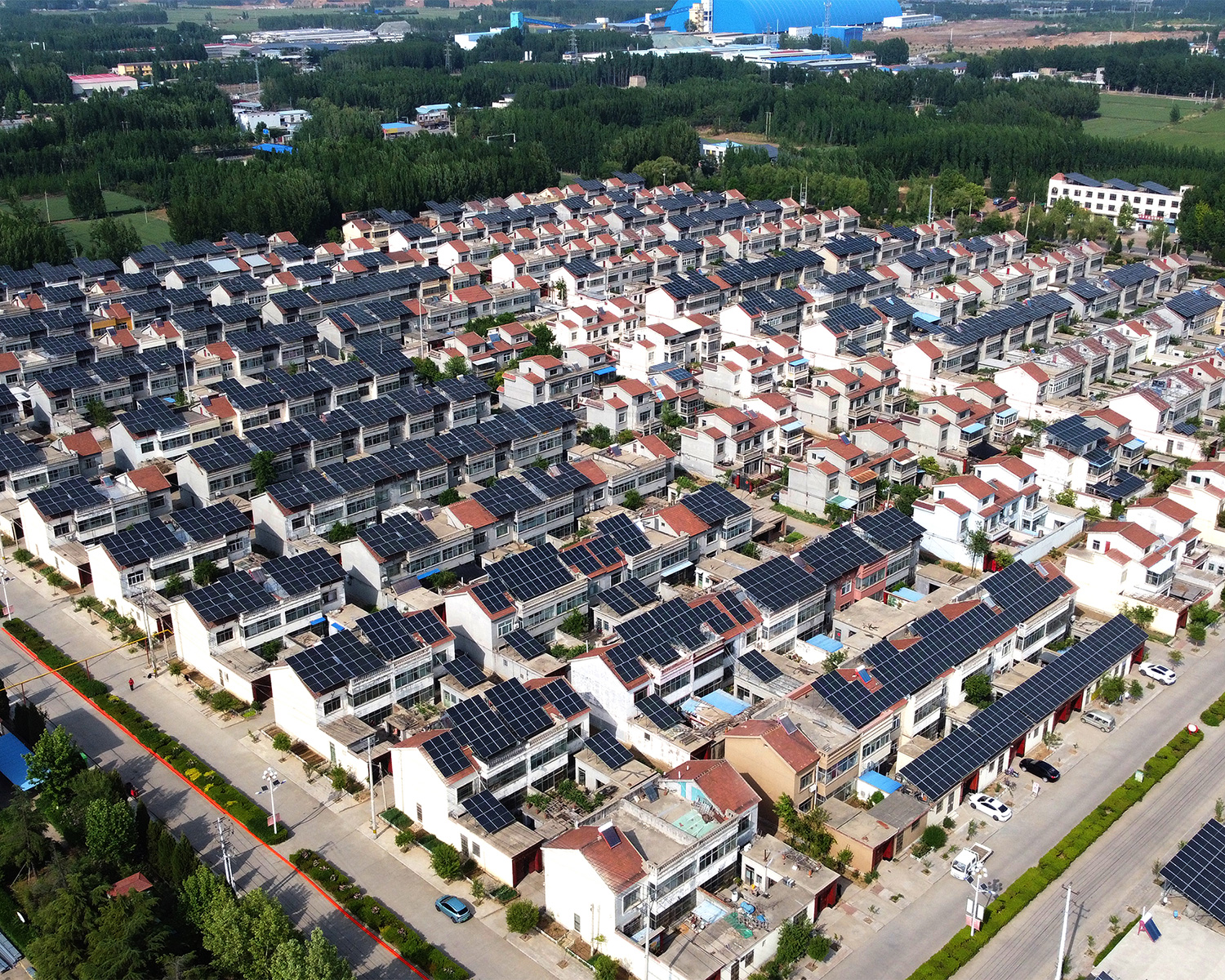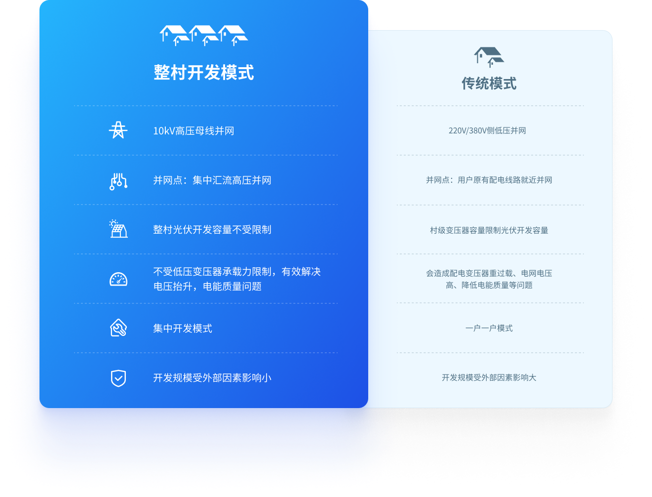 将多个户用光伏系统集中汇流接入电网,形成村级分布式能源网络,通常结合储能和智能调度系统,实现能源共享与优化配置。